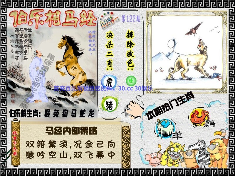 | 红肖:马兔鼠鸡绿肖:羊龙牛狗蓝肖:蛇虎猪猴 |